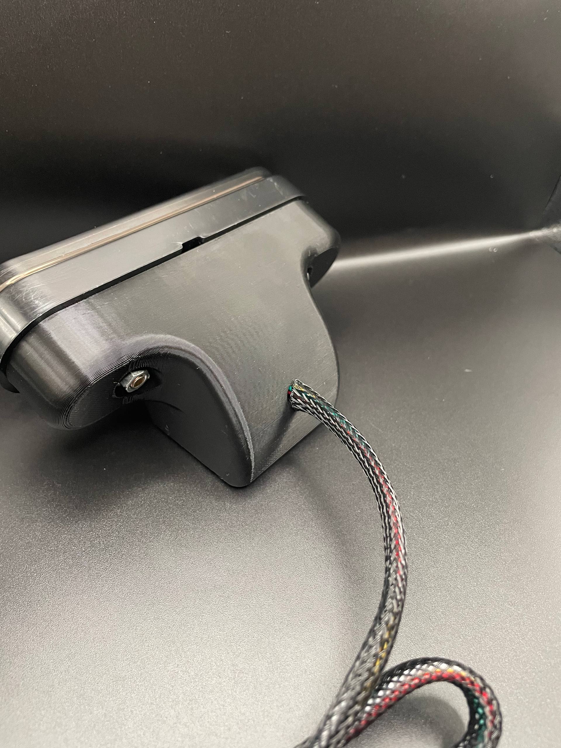 Rock-solid mount: purpose-designed PETG body with center pass-through and top/bottom wire channels